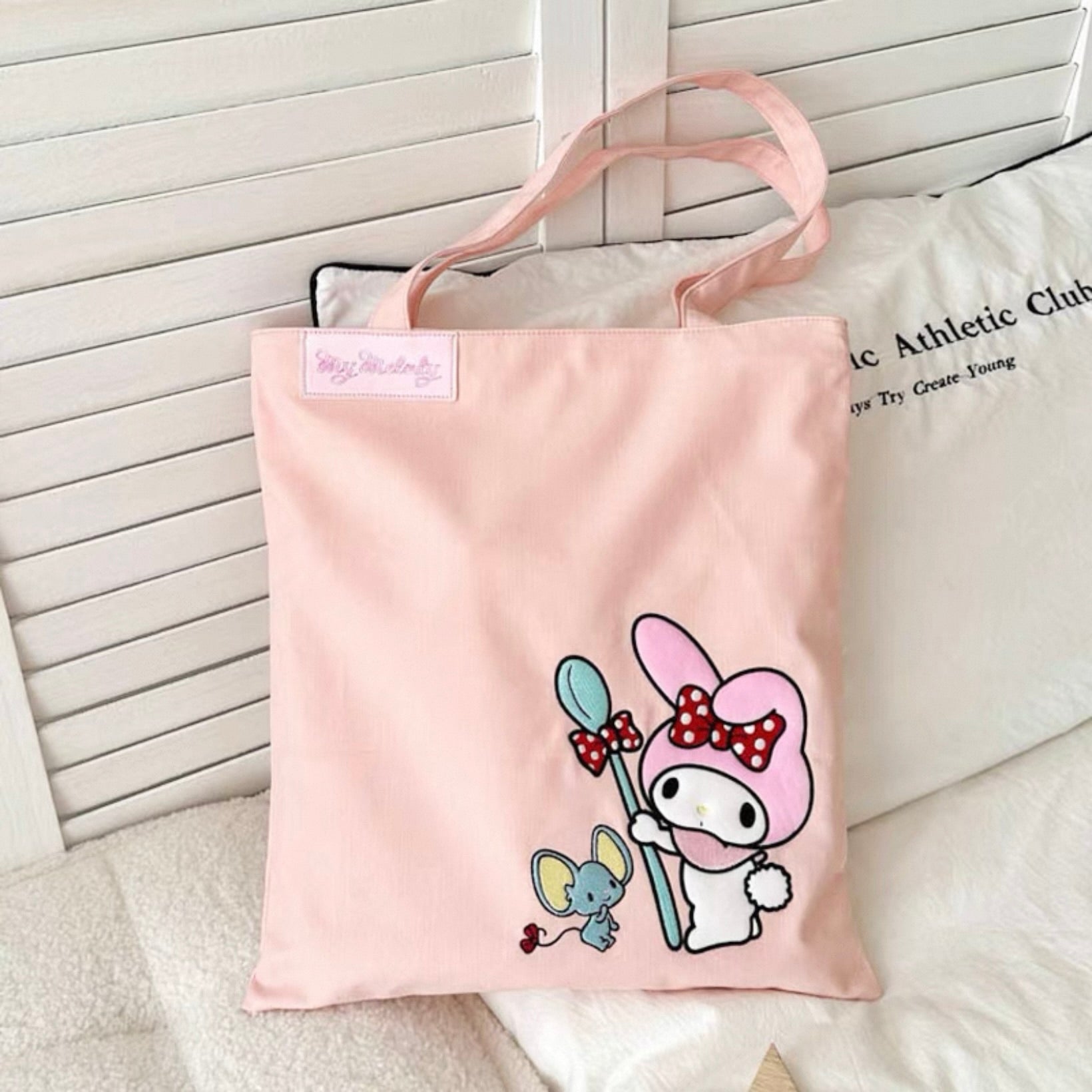 Carry your essentials in kawaii style with this Sanrio-inspired tote bag, crafted from a comfy blend of cotton, polyester, and spandex. Whether you’re heading to class, brunch, or a cozy café, this bag adds a playful pop of personality to any outfit 🌸